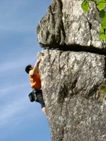 弟岩 下積み生活 5.10d TR,1テン 100岩では5.10b(改訂前) 下部が細かくて、朝イチには怖い。。