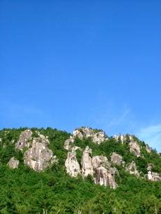 空の青さと山の緑に岩峰の白さが一層際立って、岩峰の上部から見渡す眺望はすばらしいの一言。(たどりつければ、だけどw)