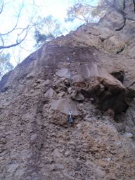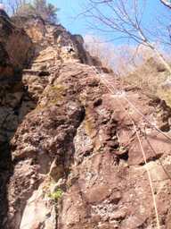 甲府幕岩はアプローチが短く(岩場への林道は長いけど)どちらかというと初心者向けのグレードが多いので、去年の秋にここを訪れたときは講習会や大人数のパーティだので、まるでインドアジムがまるごと引越してきたかのような結構な賑わいだった(顔ぶれもまた)。
