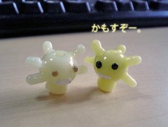 とんぼ玉なので脳天から胴体にかけて穴が開いているけど、ストラップとかに仕立てたところで、速攻で胞子が吹っ飛びそうな悪寒。。