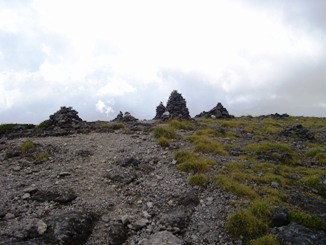 あまりにのっぺりしすぎて、あまりにケルンが点在しすぎて、濃霧の中では道迷いしそう。