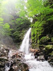 狭い回廊に5m、4m、4mの滝が段々と続く連瀑帯。それぞれの滝は下に小さいけれど割合深い釜があり、滝の落ち口からはぼうぼうと水が走っている。