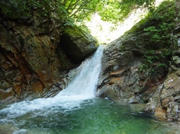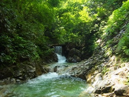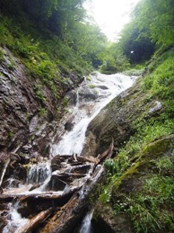 お天気も、結果として概ね曇りときどき晴れで夏の眩しい陽射しが開けたナメ床を照らす、気持ちの良い一日となりました。遡行を終え、花豆ジェラートを食べ、駐車場で片づけをしてさぁ温泉へ…というところでザーっと土砂降り。タイミングに恵まれてラッキーでした。