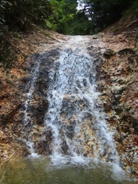 小滝を構える釜を左からヘツルところの上部に試掘跡があり、そこから冷気が噴出しているようで、このあたりだけやけに空気が肌寒し。