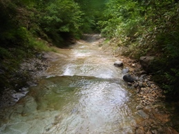 入渓まもなくの地点に古そうなジュースの空き缶の欠片が土中に埋まっているのを見かけたくらい。