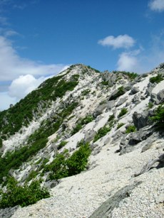 稜線まで露出した岩が続いている。奇妙なオブジェに見えなくもないや。しかし突然すぎてびっくりだ。