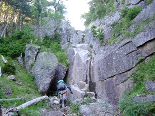 スーパー林道のすぐ脇の、ごろごろと赤茶けた岩が転がる急な傾斜の地帯に、冷たそうな水がだばだばと流れ落ちていて「こ、こんな沢を登るのか」と怯んだ覚えと「上流は花崗岩地帯で、きれいなんだよ」という師匠のコメントが印象的でした。