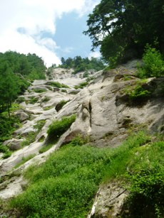 全体的に岩がヌメヌメしていて、さらに苔生しているので、とにかく滑る滑る。