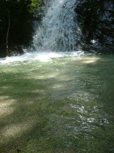 白い滝にはこじんまりながらも、水を湛えた美しい釜もありました。