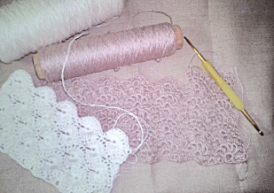 ベージュピンクのパターンは「かぎ針編みパターンブック300」から。なんだか自分にはso sweetでtroppo dolceでクラクラするほど甘い。でもかわいい。