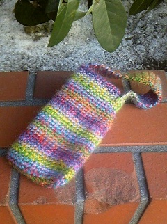 前に編んだ携帯電話用袋がかなりヘタってきたので、新たに編んでみました。