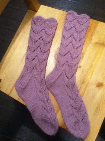 いつも同じ場所に転がしたままの並太毛糸を見ていたら、そうだ靴下を編もう! という気分が高まり、靴下を編んでみました。