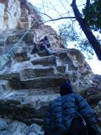 ・マミーブルー(5.10c) - RP2。とりあえず、外岩グレード1歩前進。小川山のおばさん岩にある「子供をなめんなよ(5.10a/b)」をさらに立体的にしたような感じで面白い。ただし、カンテのところに浮石が多数。いつか落ちてしまいそう。