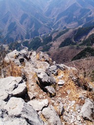 (この上級コースには以前個人の方が鎖を設置されていたそうですが、「事故が起きたら責任を取れるのか」などと批判されたため鎖を撤去したのだという設置者の方の説明書き(平成19年5月付)がありました。ほかにも鎖場のある山はあるのに、なんでまた二子山だけ(?)こんなヤヤコシイことになったのでしょうか。。なんだか哀しい話です。)