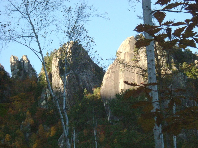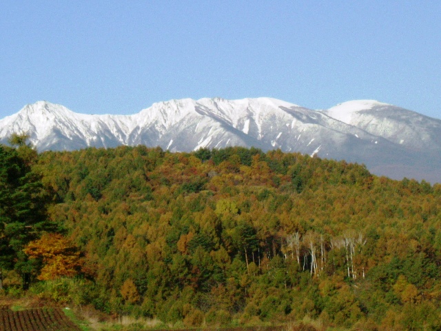 信州峠を越えて再び小川山を目指す途中、冠雪した八ヶ岳が見えました。青空の下、紅葉の低山と雪化粧の高山と…目にごちそう。(* ̄▽ ̄*)