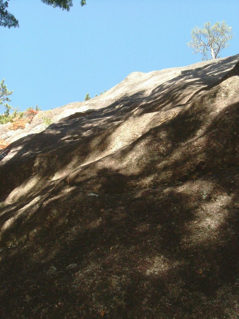 さて。屋根岩2峰を眺めてから「ソラマメスラブ(5.9+)」に移動。