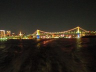 定刻22時にかめりあ丸が出航。デッキに出て東京湾を眺める。東京タワーや晴海、お台場の夜景が一望。しばらくしてレインボーブリッジの下をくぐる。ごちゃっとした電飾ワンダーランド。昼間のゴミゴミした風景よりはキレイだけど、正直安っぽい。