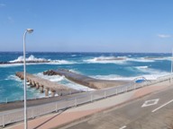 あっという間に集落を抜けて前浜に出る。観光客はおろか町を歩く人自体ほとんどいない。浜辺はやっぱり風が強くて吹き飛ばされそう。防波堤に豪快な白波がぶつかっては砕ける。そんな荒れた海でも水の色がきれい。沁みる。。