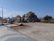 なんでも明治時代かその後か、若郷村の村長さんが手狭な若郷の渡浮根港を拡張すべく、港周辺の岩山をダイナマイトで発破して港に沈めるという一大工事を行ったらしい。でも、この工事の結果は裏目に出て、巨大な岩がごろごろ港に溜まってしまい波が高いときには浜辺に打ち上げられたりと、ぶっちゃけ失敗に終わったそうな。
