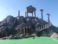 ここの浴槽やギリシャをモチーフにした神殿(なぜ神殿?)もコーガ石。石の階段を上がって神殿部分に行ってみたけど、オフシーズンのためか空でした。残念。
