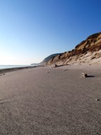 ←遠く先の浜辺のど真ん中になぜかコンクリート製のテトラポットが半分以上埋もれていました。なんというか、「世界の終わり」みたいな風景。