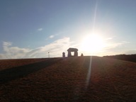 都立羽伏浦公園にあるコーガ石のモニュメント。ストーンヘンジ調。両脇には定番のモヤイ像。