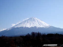 河口湖湖畔でお昼ごはんを食べ、道中にある「道の駅なるさわ」で一休み。眼前にどどーんと富士山の雄姿。青空の中にすっくと聳える独立峰。時折青空の中に一陣の雲が流れてきて富士山山頂付近にまとわり着いて流れ去っていく。西の斜面は太陽の光がぺかりと照り返し、雪が焼結してツルツルのアイスバーンになっているらしい。