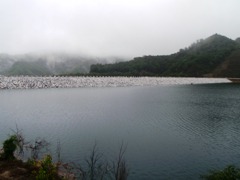 Wikipediaの記述によれば、「最終的には6台の水車発電機により揚水発電所としては世界最大となる予定である」とのことだけど、堰堤はともかくダム湖自体は周囲5.5Km程度の割合こじんまりとしたもの。