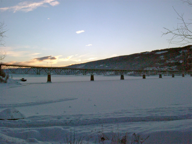線路が併走するフィヨルドの水面が、リレハンメル周辺では凍結していたのですが、南に向かうに連れて解けてゆるゆると流れていく様子を車窓から眺めていました。