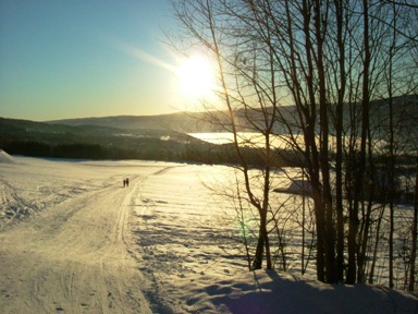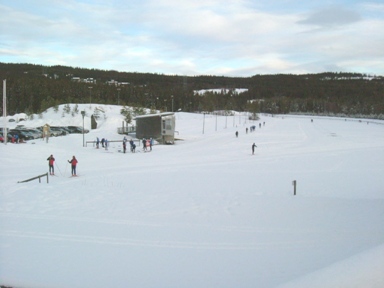 昨日と同じ、宿の裏からløype(ロイペ=クロカンコース)を登り3Km離れたSkistadionへ。天気も良く、祝日ということもあり、クロスカントリー競技場はかなりの賑わいでした。