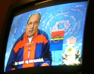 そういえば。元旦の夜に、Sametinget(サーメ議会。サーメ語ではSámediggi)の議長の挨拶がテレビで流れました。昨日、大晦日の夜にノルウェー国王が挨拶をしたのと同じようなカメラワークで。