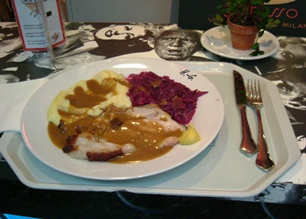 本日の定食は、豚のリブのオーブン焼きにブランソース、ザワークラウトとマッシュポテト添えでした。