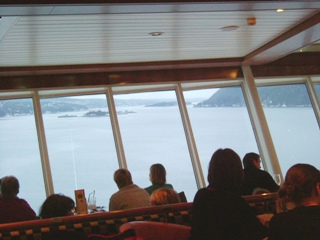 外は寒いので、中の展望バーに移動。船はオスロフィヨルドを走ります。